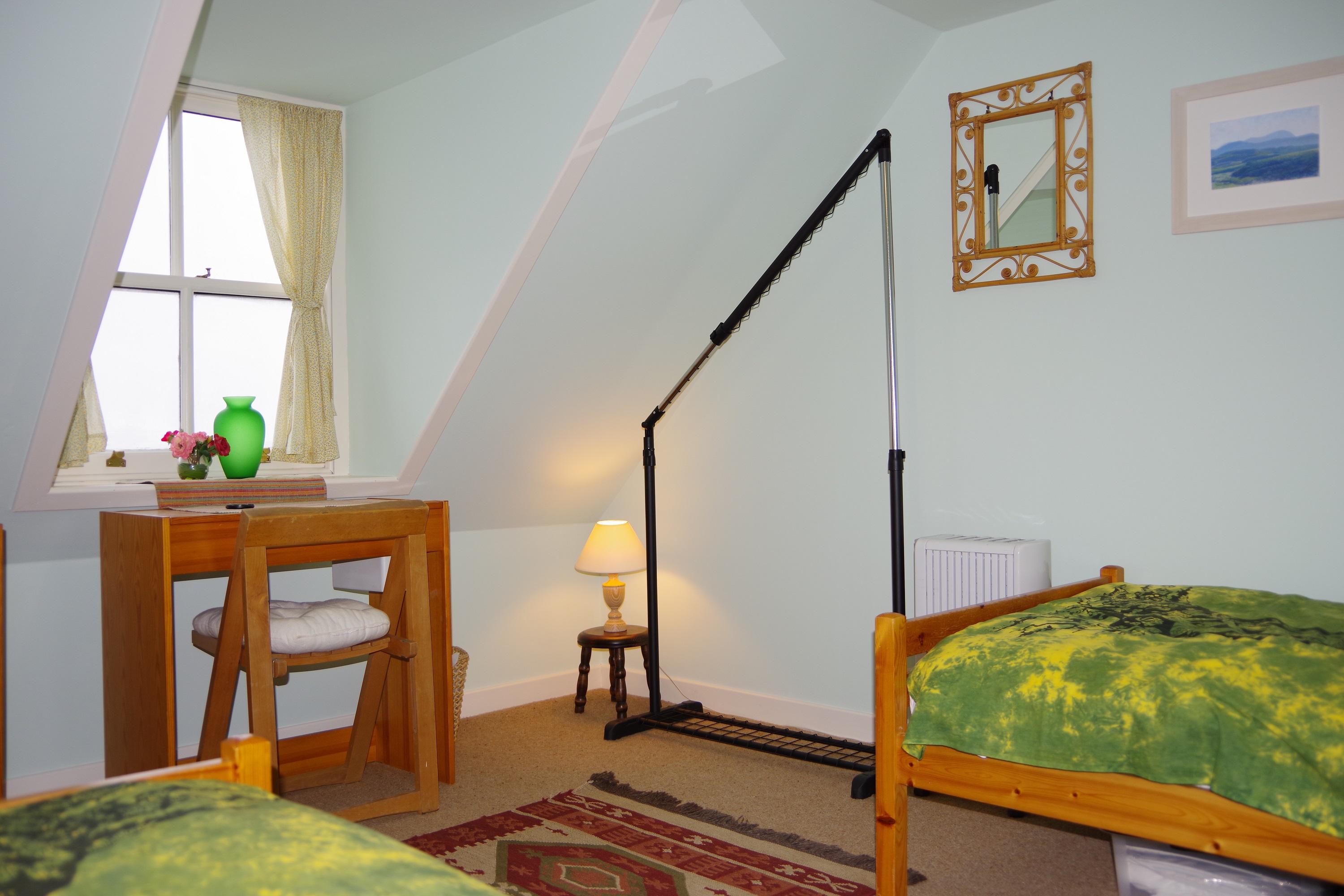 BEDROOM ONE with two single beds, with two pillows and a duvet for each. Extra blankets provided if required.