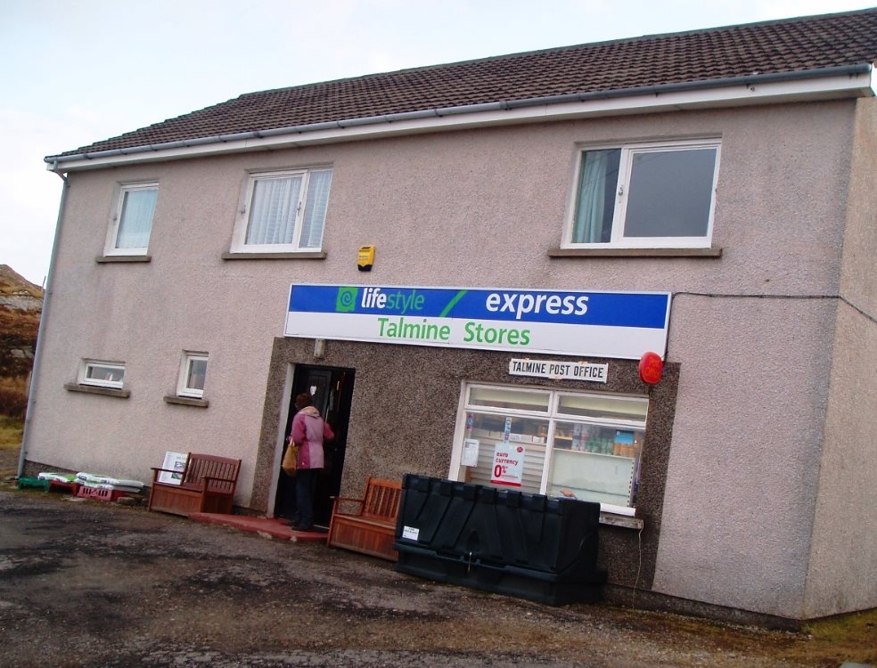 Talmine Post Office (2 mins walk) stocks a wide range of good quality fresh and frozen foods including meat and vegetables, plus toiletries, cleaning materials, cards etc. A fish seller who sells a wide variety of fresh fish visits once a week stopping outside the Post office.There is also a gift shop in Talmine next to the post office.